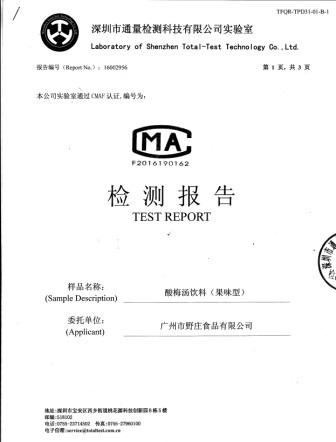 酸梅汤饮料(果味型)质检报告-1